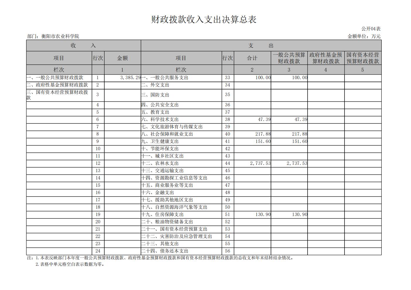首页 > 院务动态 > 2024年度衡阳市农业科学院部门决算 | ![]() |