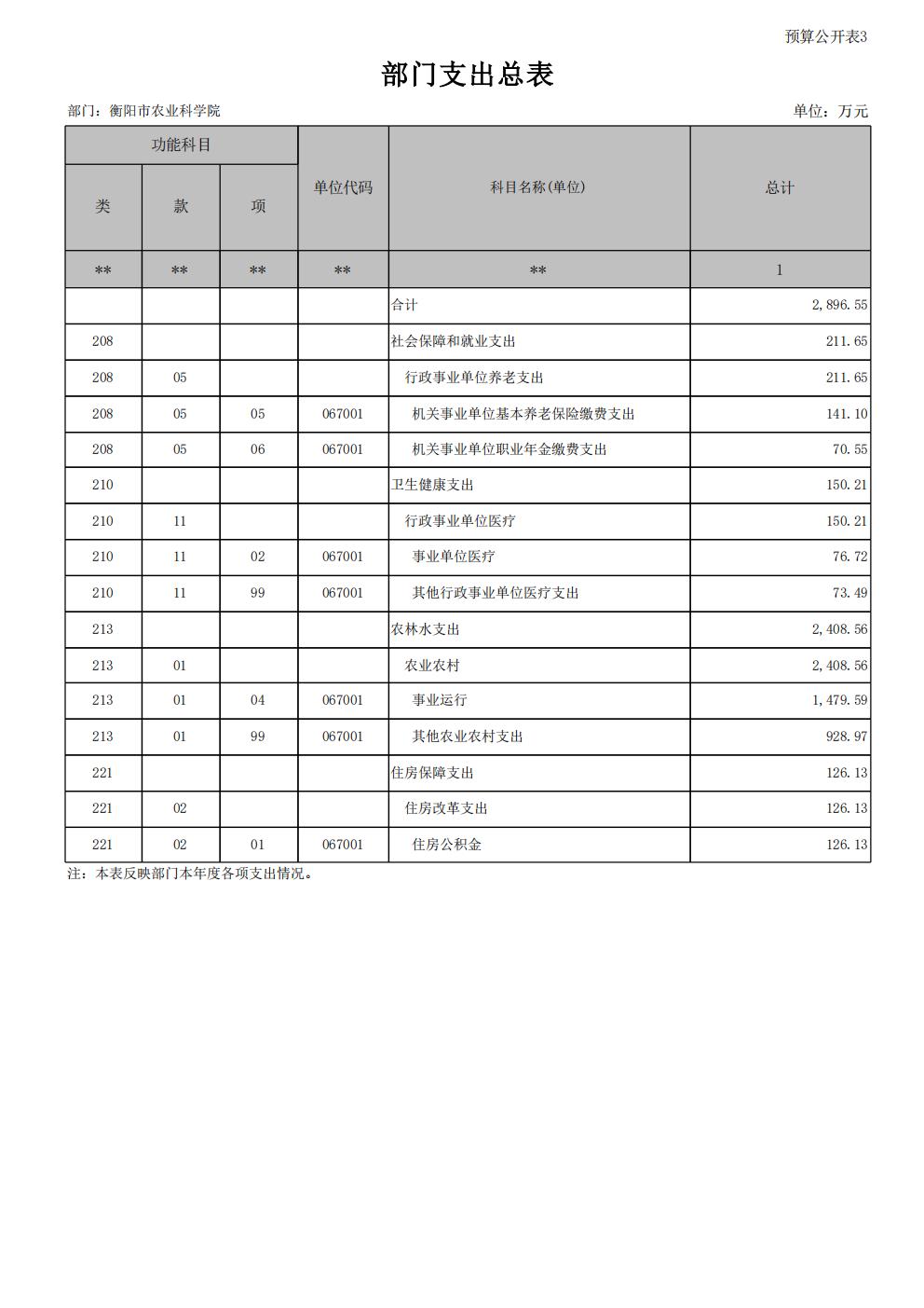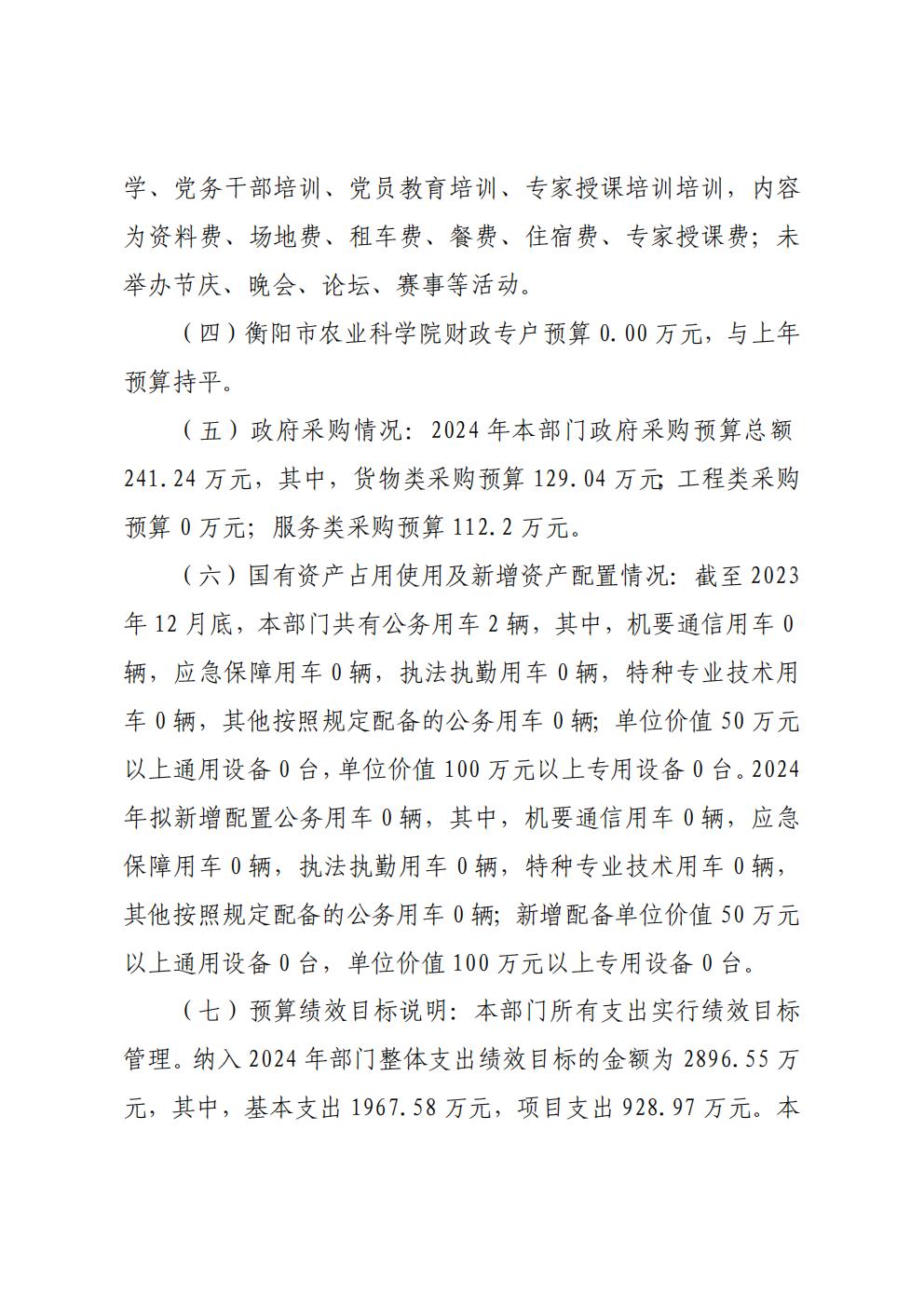 首页 > 院务动态 > 2024年度衡阳市农业科学院部门预算 | ![]() |