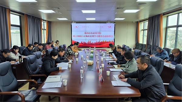 3月10日上午,衡阳市农业科学院召开党的建设工作领导小组(扩大)会议,传达学习中央、省委和市委关于开展树立和践行正确政绩观学习教育的有关精神和部署要求,全面启动并部署全院学习教育工作。院党委书记、院长、党的建设工作领导小组组长朱捷主持会议并作动员讲话。院领导、各部门主要负责人及各党支部书记参加会议。