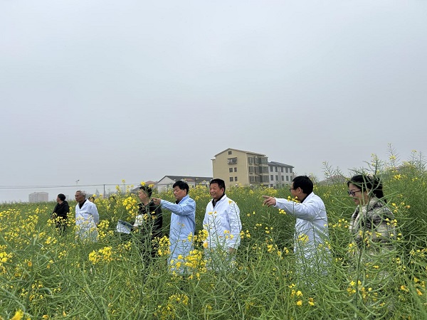 院士一行深入田间地头,实地察看油菜品种长势、试验示范开展情况,详细了解衡阳在油菜新品种筛选、配套技术集成、示范推广落地等方面的具体举措。衡阳农科院始终以油菜单产提升为核心抓手,深耕油菜科研与示范推广。